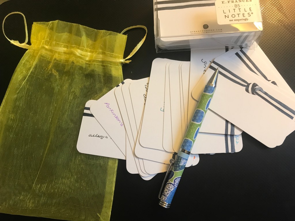 I have core spiritual practices; practices that have been part of my life for a long time, including writing in my journal and starting the day with meditation and prayer time, but at various times in my life, and often with a change of the season, I add in other practices to spark and surprise me as I move through my days. Two examples: